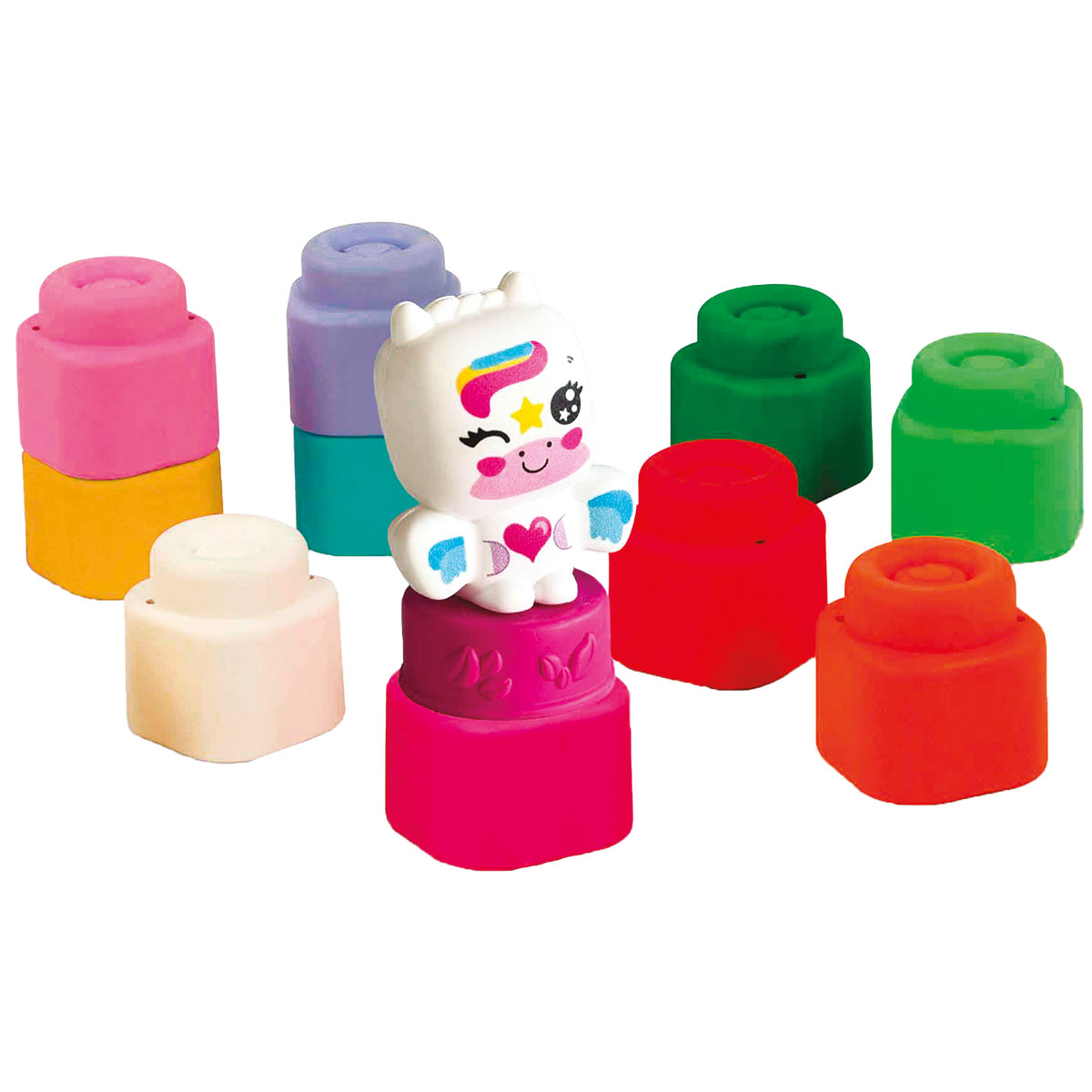 Ein Set aus 10 bunten Bausteinen und einer fantastischen Figur, um die Geschicklichkeit und die Fantasie der Kleinen anzuregen. Mit weichen und sicheren Materialien. Weichheit, die die Fantasie anregt. Die Steine fördern die sensorische Wahrnehmung der Kleinsten. Darüber hinaus lädt die Figur zum fantasievollen Spielen ein. Ein Pack zum Ausprobieren. Dank der Try me-Verpackung können die Kleinsten die Weichheit von Clemmy schon vor dem Öffnen der Schachtel entdecken.