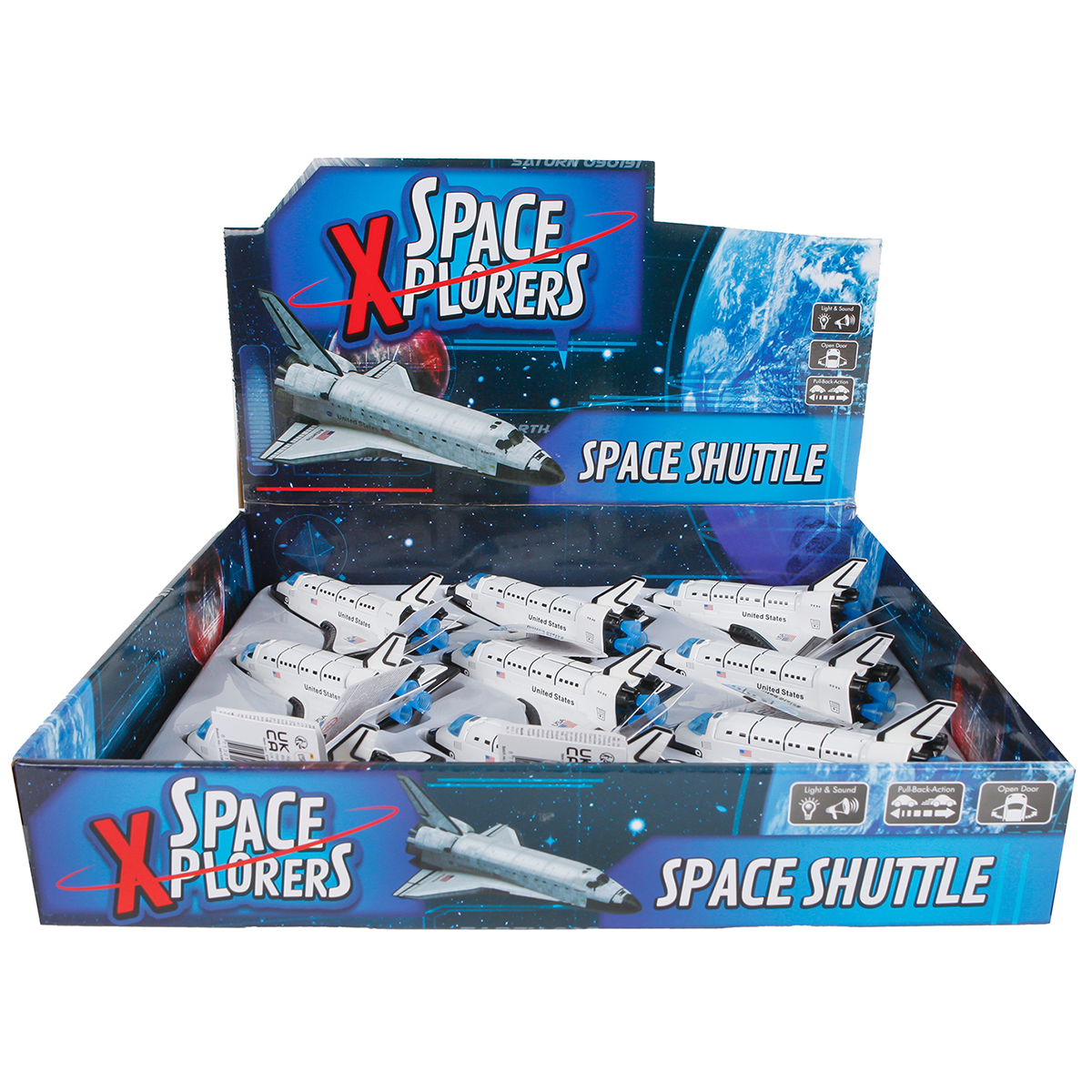 Die Cast Spaceshuttle 14cm, im Display, mit Licht, Sound und Rückzugfunktion.