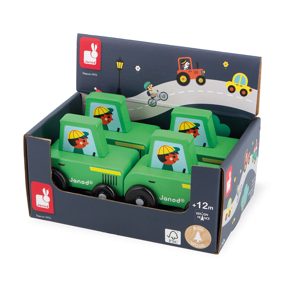 Der Bauer fährt mit seinem Traktor los, um die Strohballen von der Wiese zu holen. Dieser Traktor aus Holz bietet Stoff für viele Geschichten rund um den Bauernhof. Dank seiner Form ist dieser Traktor für Kleinkinder leicht zu handhaben. Spielzeug aus Holz für Kinder ab 12 Monaten. Zusammen mit deiner Matte und dem hübschen Würfel-Köfferchen aus dem Janod-Sortiment ergänzt dieses rollende Gefährt deine Welt perfekt.