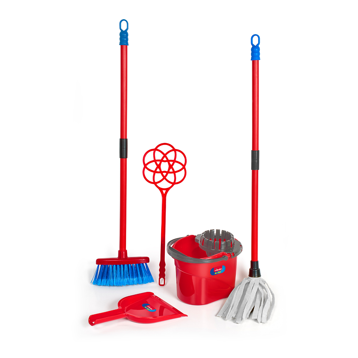 Das Vileda Reinigungsset für die Kleinen, die Mama und Papa bei der Hausarbeit helfen wollen. Kinder lernen spielerisch die Aufgaben ihrer Eltern kennen, trainieren ihre motorischen Fähigkeiten und entfalten ihre Fantasie! Die Original-Spielzeugversion