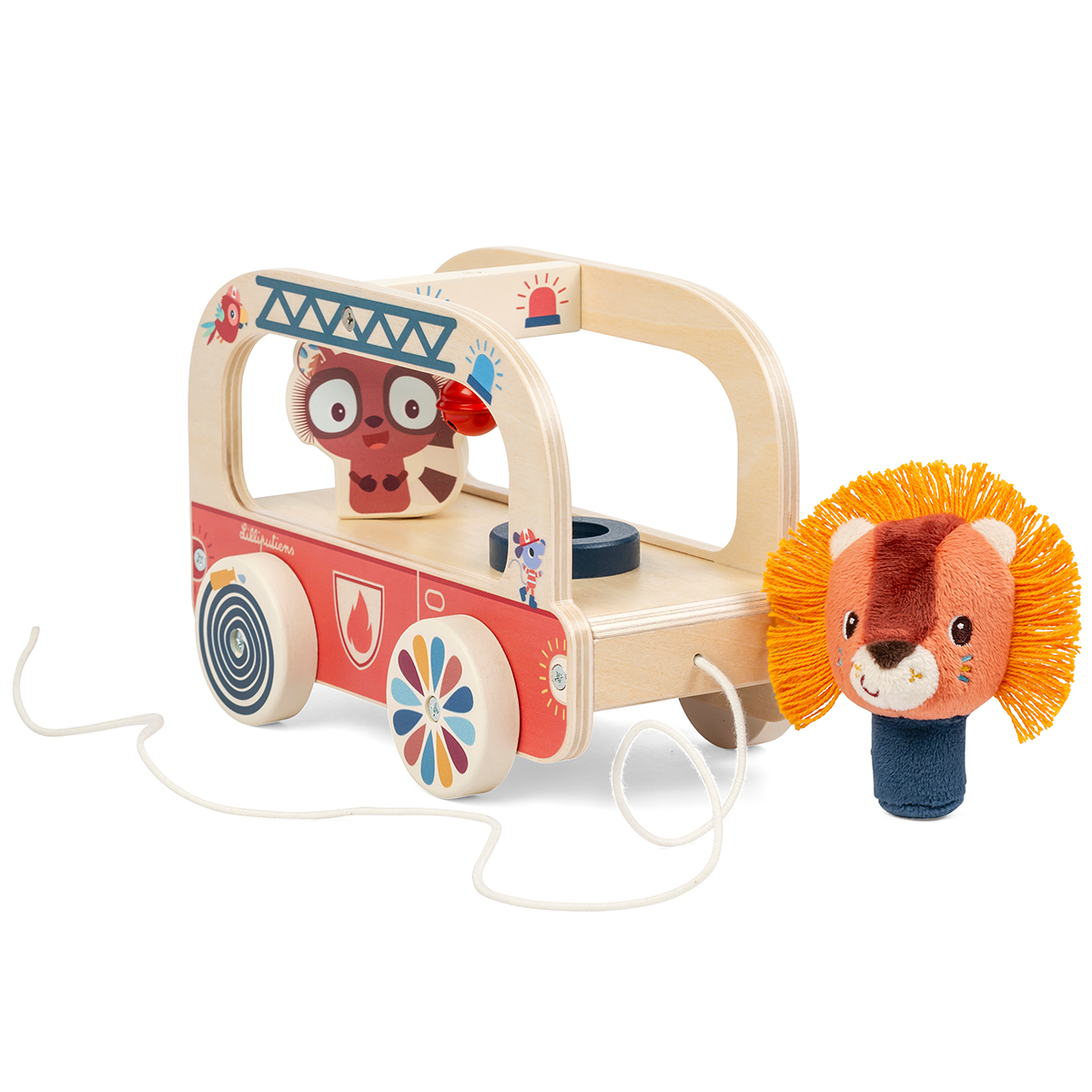 Le camion de pompiers Jack de Lilliputiens est un charmant jouet en bois qui combine motricité, imagination et beaucoup de plaisir. Ce petit camion de pompiers est idéal pour les enfants à partir de 10 mois qui aiment pousser, tirer et vivre leurs propres missions de sauvetage. Le camion de pompiers Jack de Lilliputiens combine plaisir, apprentissage et mouvement en un seul jouet. Avec ses pièces mobiles, sa sonnette et son personnage amovible, il stimule la motricité et l'imagination des jeunes enfants. Entretien : la peluche Jack Lion est lavable en machine à 30 °C, le reste du camion de pompiers peut être nettoyé avec un chiffon humide. Matériau : polyester.