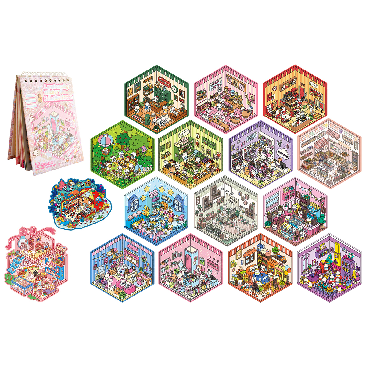 Set autocollants avec 3D livre scènes, 16 differentes scènes.