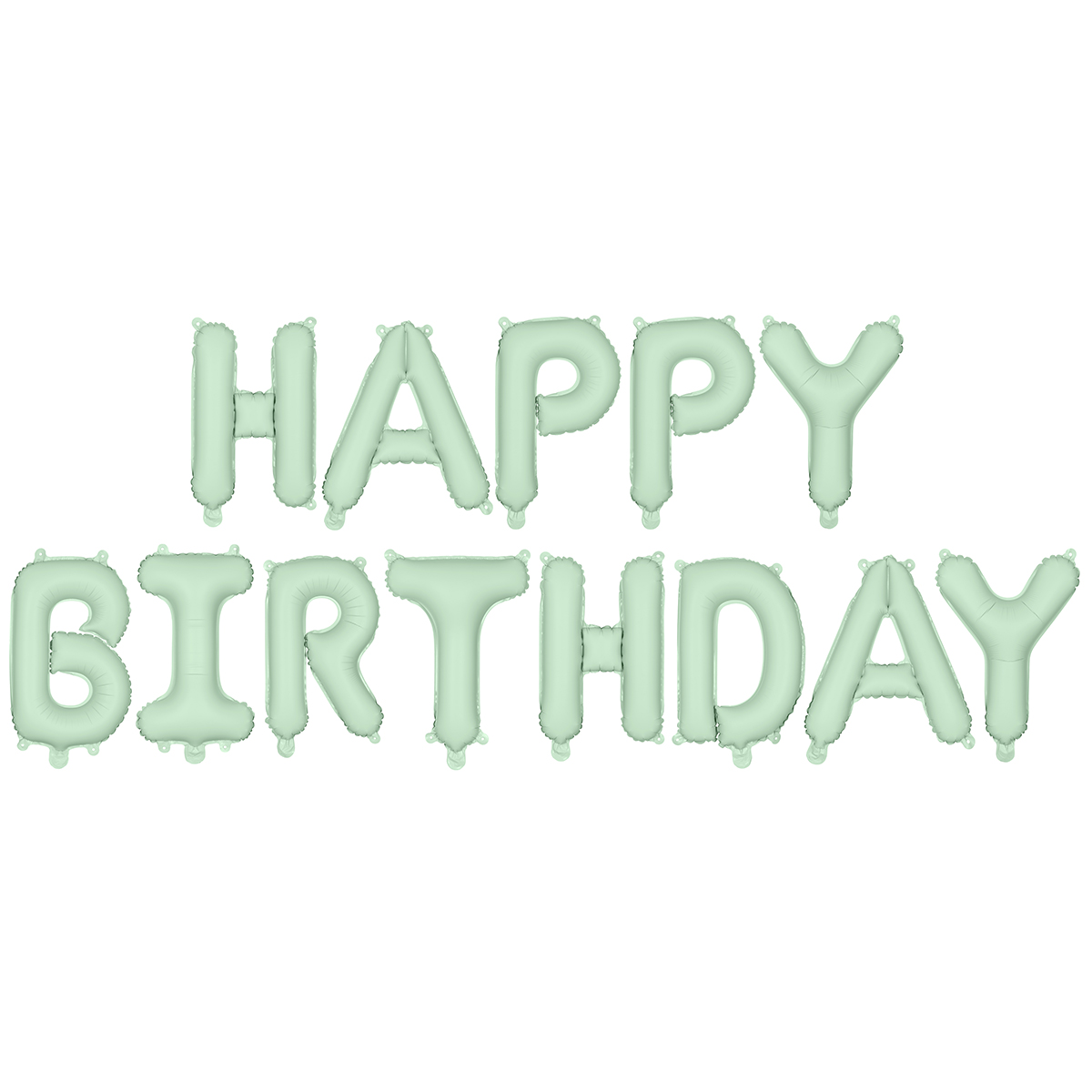 Ballon en aluminium mat Happy Birthday vert, dimensions env. 340 x 35 cm. À gonfler à l'air. Le ballon est auto-scellant et dispose de 4 crochets pour une fixation facile à un ruban.
