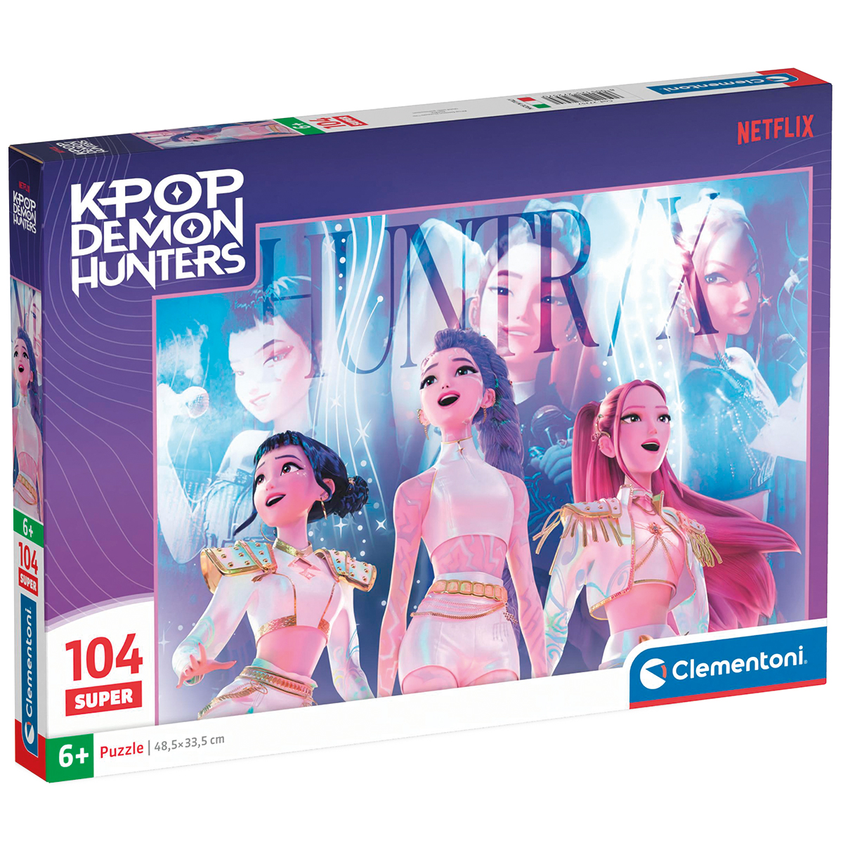 Beaux puzzle du monde de K-Pop Demon Hunters composé de 104 pièces.