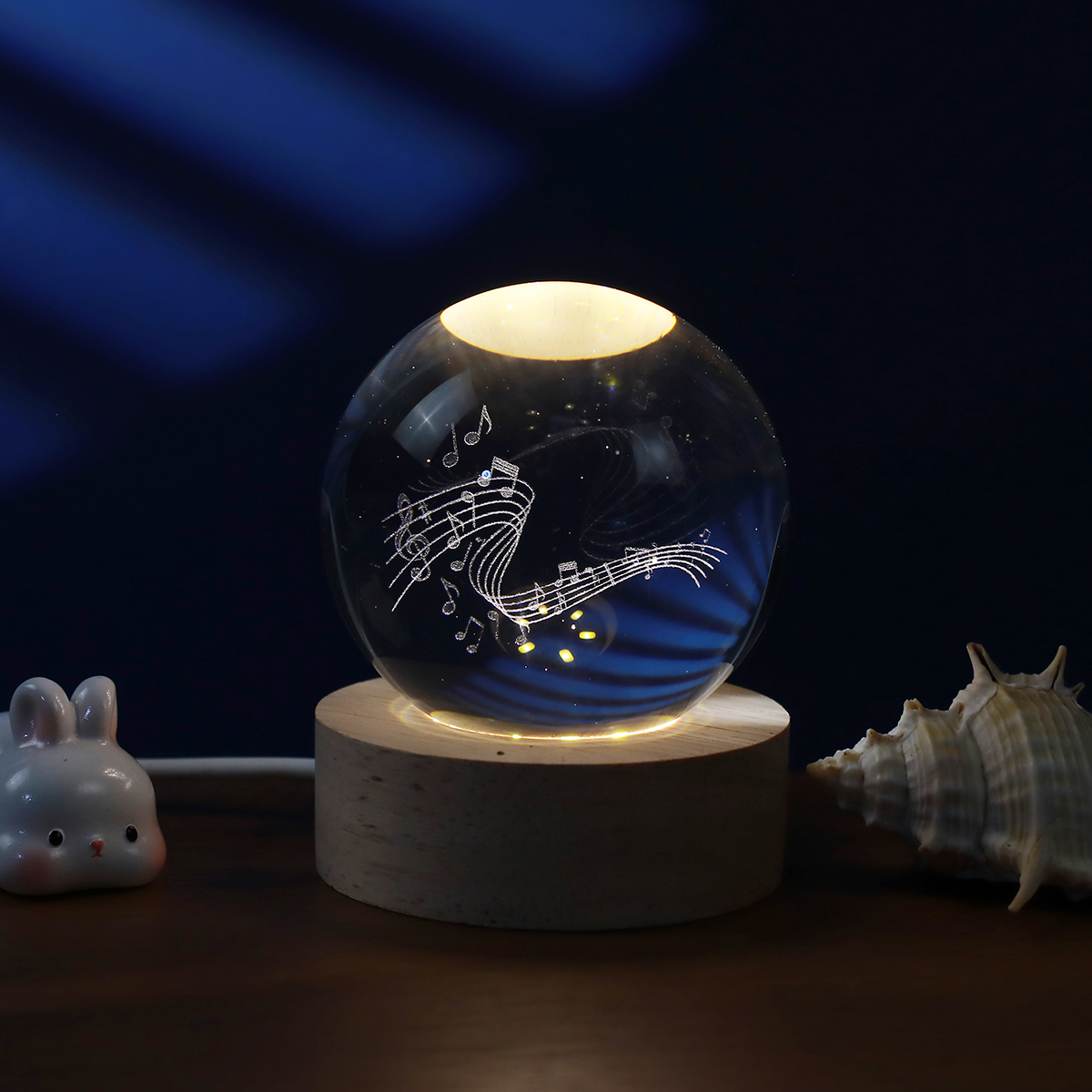 Cette boule de cristal peut servir de lampe décorative pour l'intérieur et contribuer à créer une ambiance chaleureuse. Son socle est en chêne. Elle peut être utilisée comme lampe de chevet ou veilleuse. L'intérieur de la boule est orné de gravures élégantes et précises.