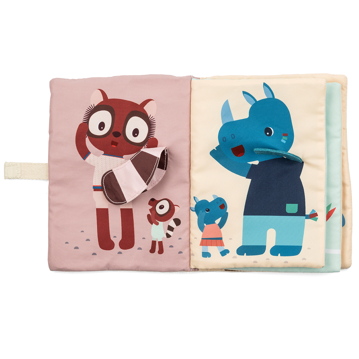 Sur chaque page de ce livre en tissu, un personnage joue à cache-cache en se couvrant les yeux : le lion avec ses pattes, le lémurien avec sa queue et, sur la dernière page, une grande surprise se cache derrière les grandes oreilles de l'éléphant. Les enfants s'amusent à soulever ou à déplacer les éléments pour découvrir les yeux et participer au jeu !
