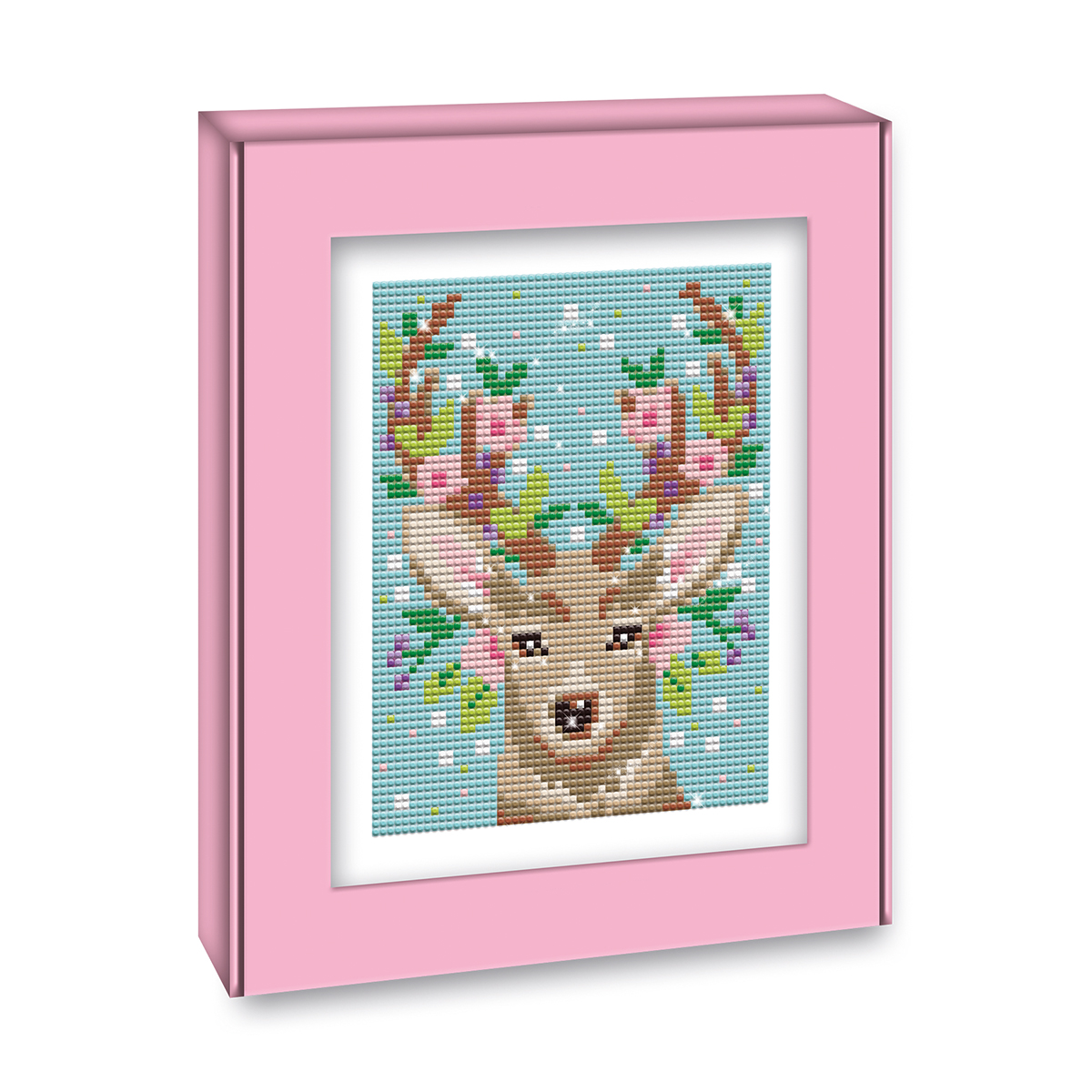 Délicatesse et minutie au programme grâce à ce kit créatif de peinture diamant pour enfants à partir de 8 ans ! Pour cette technique, nul nécessaire de s'équiper d'aquarelle et d'eau, des mini strass brillants permettent de recréer un tableau avec un effet très fin. Ce majestueux cerf mis en valeur grâce à de jolies fleurs roses est à réaliser à l'aide d'un stylet permettant de coller le strass de la bonne couleur sur le tableau en respectant les étapes indiquées dans le livret. Il est accompagné d'un cadre à construire à partir de la boite pour magnifier la création. 1350 mini strass de 14 couleurs différentes sont inclus, ainsi qu'un plateau et un carré de gomme pour faciliter la manipulation des strass. Il faut environ 4 à 5 heures pour réaliser le tableau. Cette activité développe la concentration et la motricité fine.