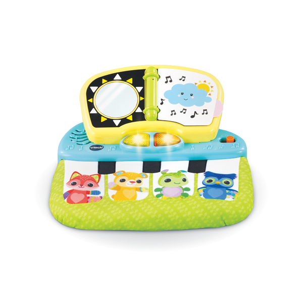 Piano sensoriel des Baby loulous - 3 - 24 mois. Un piano tout doux pour découvrir la musique ! En compagnie des Baby loulous, Bébé découvre la musique. 4 touches de piano pour découvrir les animaux et déclencher des sons et des mélodies. 1 partition à faire tourner pour découvrir 4 pages dont un miroir soleil pour révéler son reflet. Les touches toutes douces et les différentes parties à manipuler stimulent les sens de Bébé et l’aident à développer sa motricité. + de 50 mélodies, chansons, sons et phrases. Réglage du volume sonore. Arrêt automatique. Fonctionne avec 2 piles LR03 fournies. Boîte Try-me.