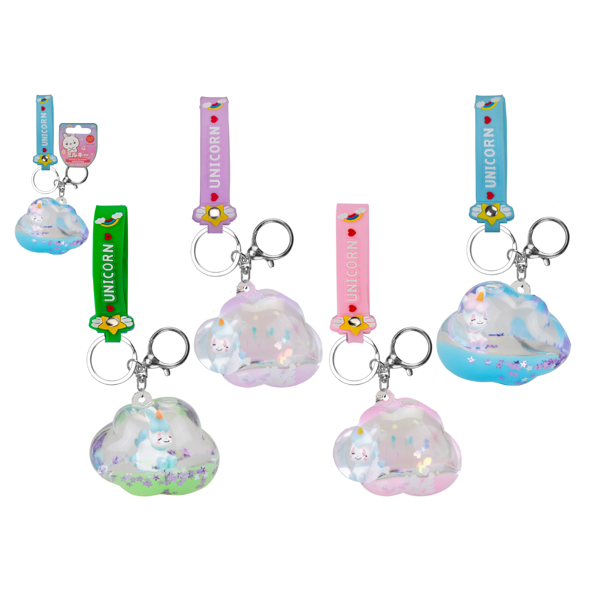 Porte-clés avec breloque en acrylique, liquide et ruban, 4-fois assortis