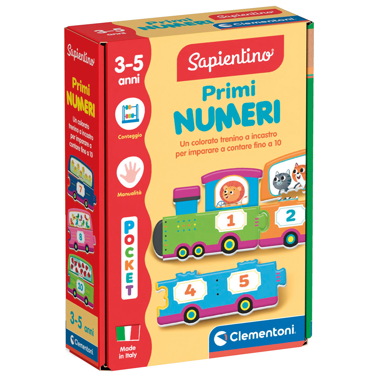 Primi Numeri Sapientino, 10 tessere quanità da incastrare ai vagoni del trenino per imparare a contare fino a 10.