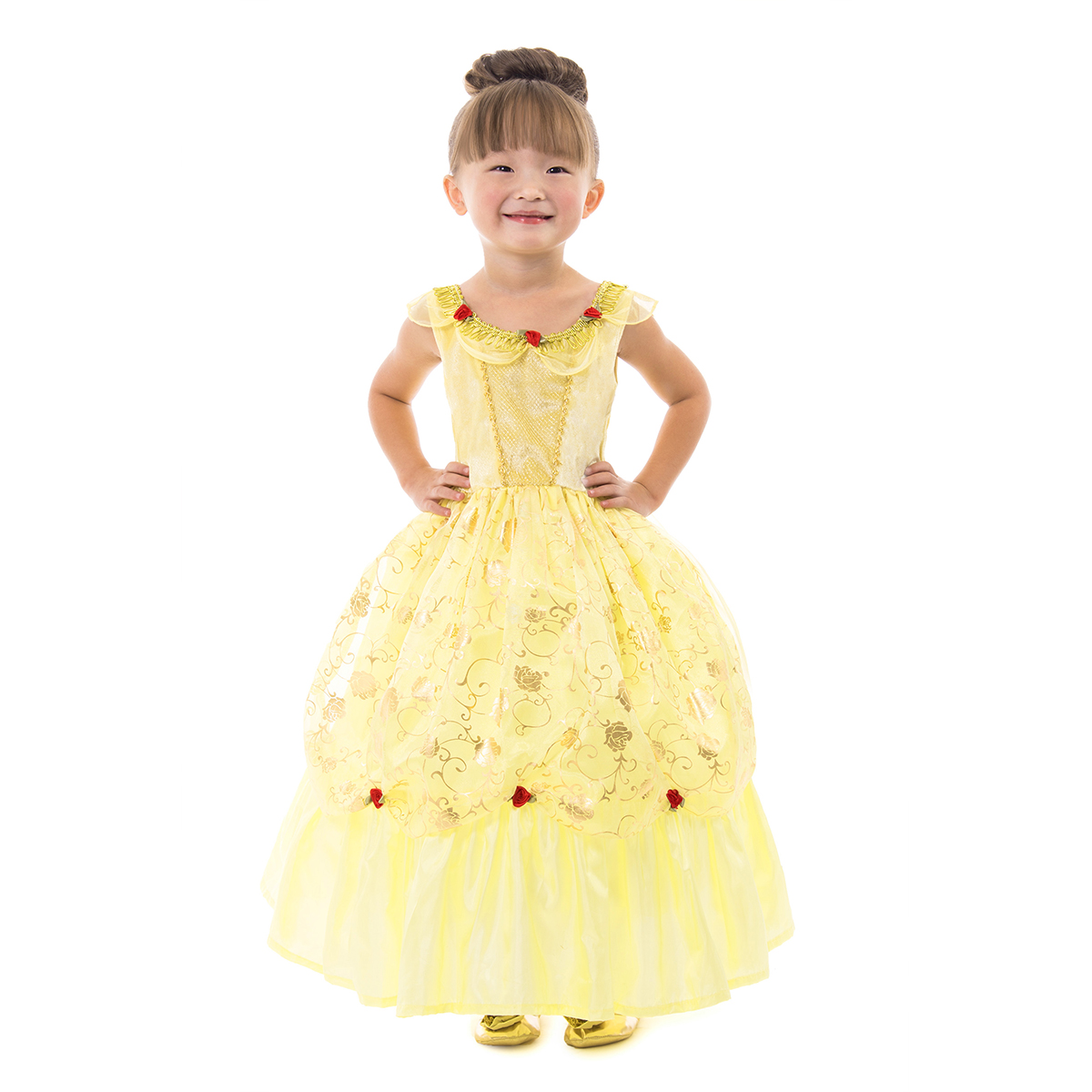 Préparez votre petite à une nuit de conte de fées inoubliable dans un immense château – avec cette robe de bal au design classique. Haut en velours extensible jaune avec empiècement à motif croisé doré. Ornée de roses rouges à l’encolure et sur la surjupe. Jupe jaune en soie de Chine avec surjupe en organza à motif de roses dorées. Respirant, doux comme de la soie, 100 % polyester