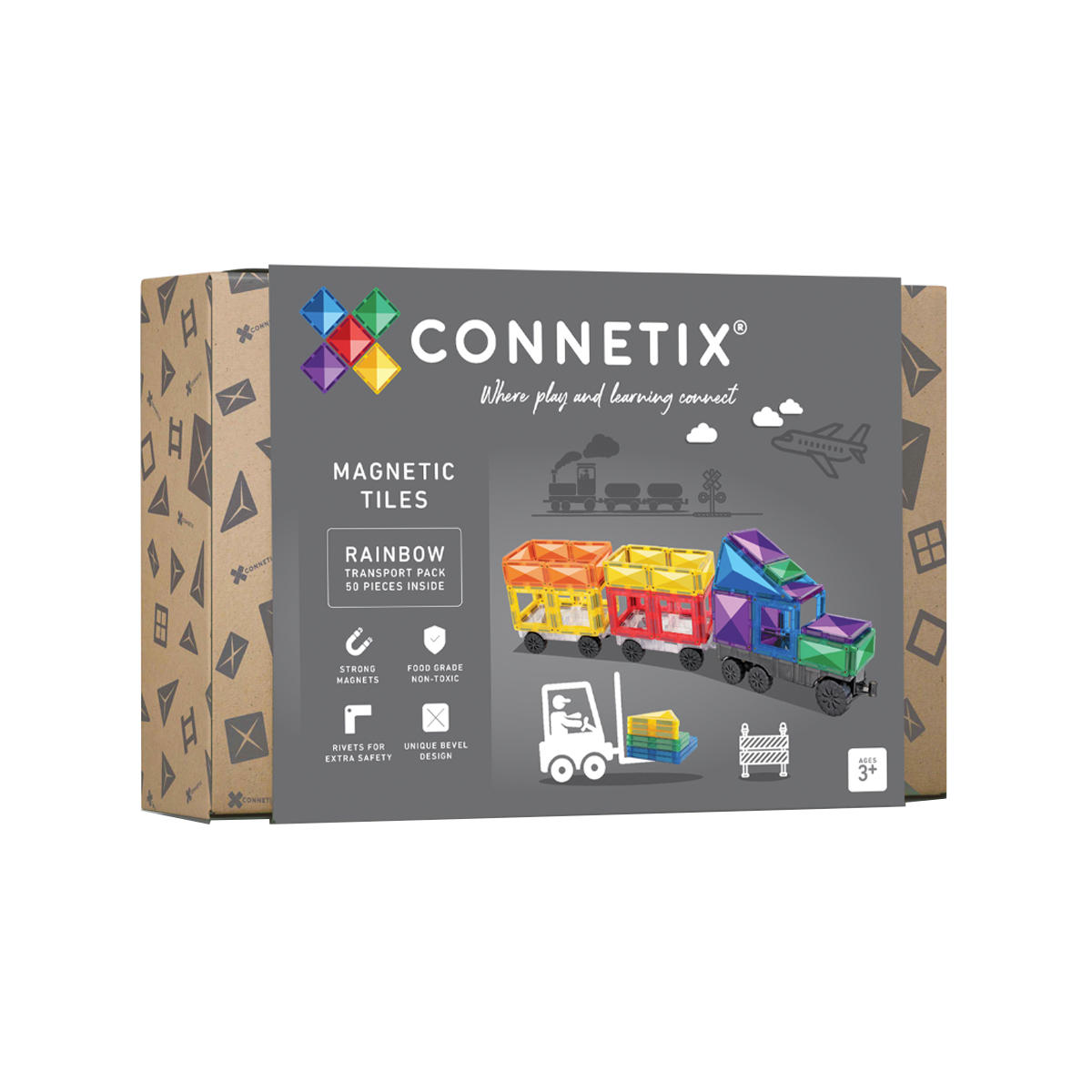 Préparez-vous à vivre des aventures automobiles extraordinaires avec le coffret de transport Connetix de 50 pièces! Spécialement conçu pour les jeunes passionnés de véhicules, ce coffret comprend une base de transport grise réversible, deux bases transparentes avec de véritables roues en caoutchouc et une sélection de blocs de construction magnétiques Connetix. Créez et construisez d'innombrables modèles de véhicules! Explorez les concepts STEM (sciences, technologie, ingénierie et mathématiques) en jouant et en utilisant le magnétisme, les formes et les couleurs pour concevoir vos propres camions et trains, ambulances et avions, chariots élévateurs et camions de pompiers. Libérez votre imagination et donnez vie à vos idées avec le coffret de transport Connetix. Grâce à la conception Connetix exclusive, avec des bords biseautés pour une durabilité accrue et une réfraction de la lumière optimale, les coffrets Connetix évoluent avec les enfants, les accompagnant dans leurs jeux et leurs apprentissages. Complétez votre coffret de transport avec d'autres coffrets de la gamme Connetix et donnez une nouvelle dimension à vos créations!