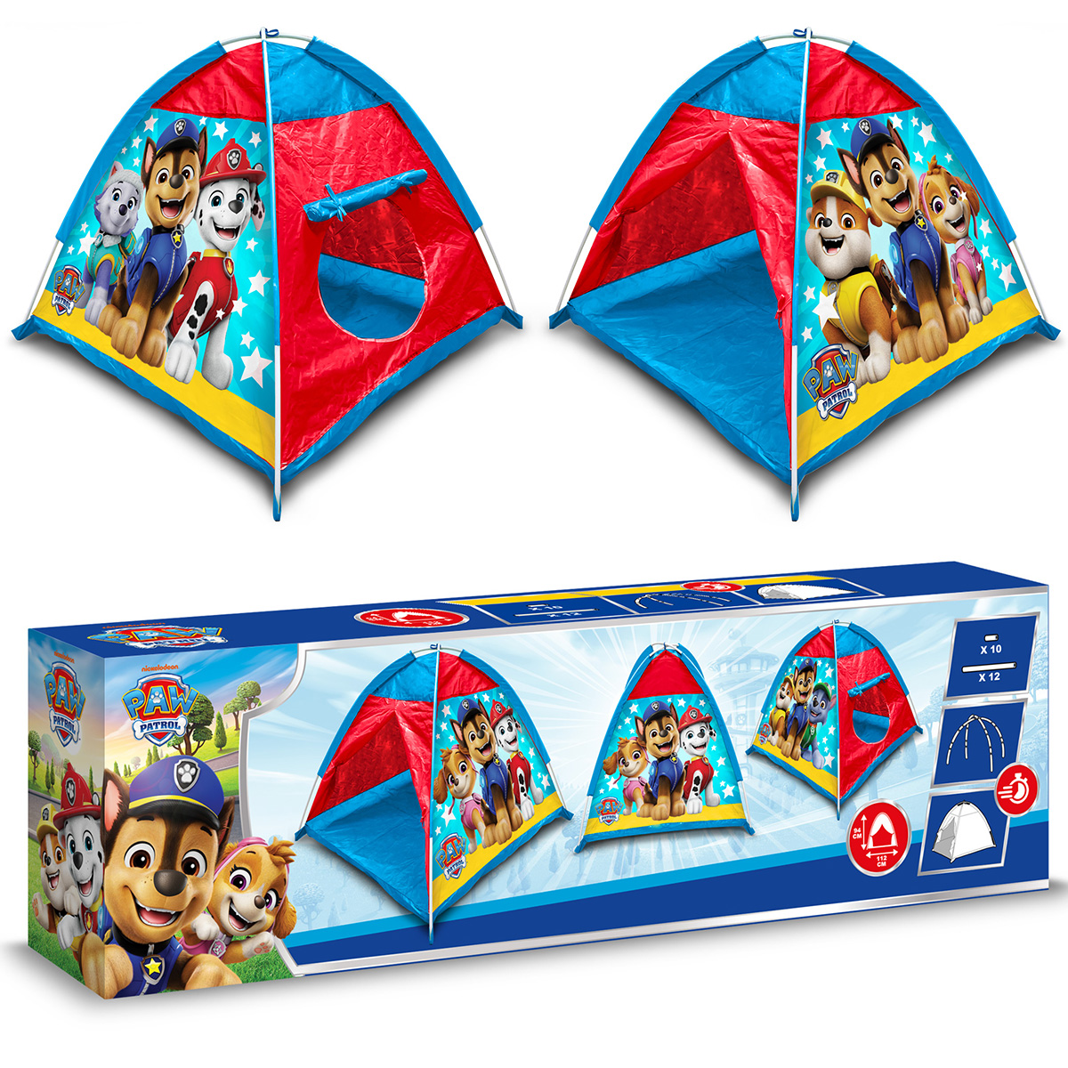 Une tente de jeu colorée pour l’intérieur et l’extérieur. Offre aux enfants un espace confortable au design de la Pat’ Patrouille.