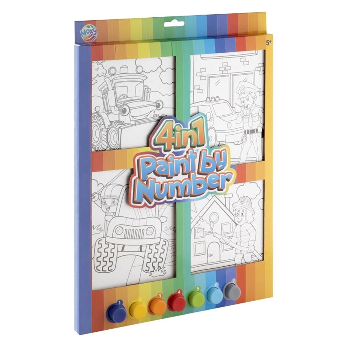 Malen nach Zahlen Canvas Bilder Boys 20x15cm (2x) und 15x15cm (2x) inkl. 8 Farben und 1 Pinsel.