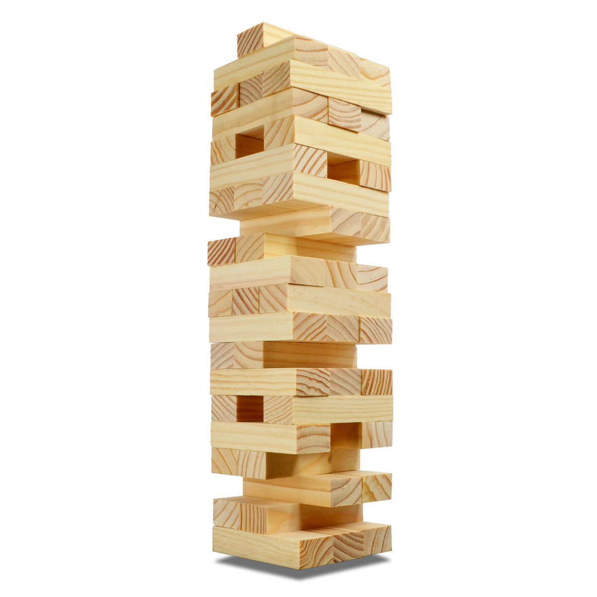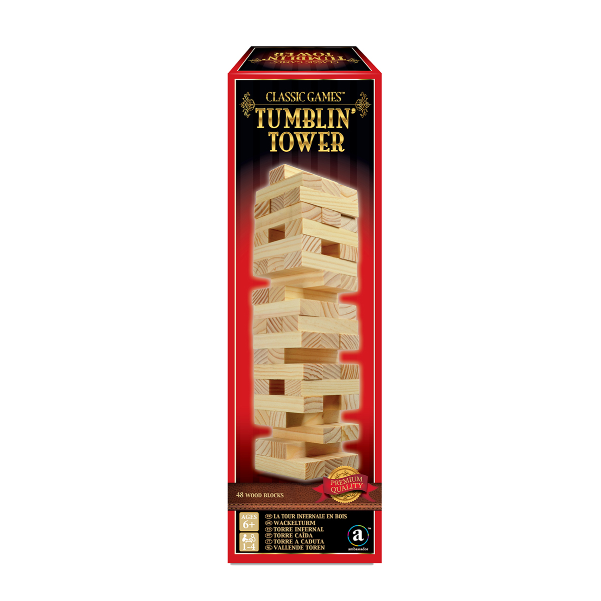 Geschick, Spannung und jede Menge Spass! Baue den Turm Stein für Stein, doch Vorsicht, jeder Zug kann der letzte sein. Wer hat die ruhigste Hand und bringt den Turm nicht zum Einsturz? Ein spannendes Familienspiel, das nie an Reiz verliert, für kleine und grosse Baumeister!