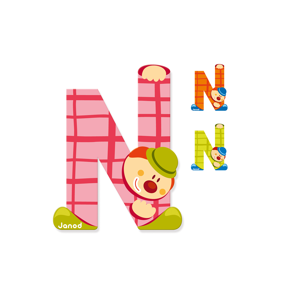 Buchstabe Clown N 6.5x0.7x8.5cm 10 gr, Farben assortiert, aus Holz