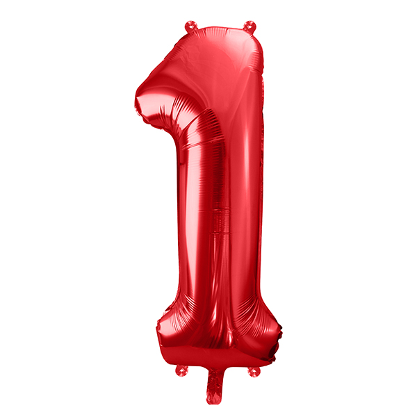 Metallisierter Folienballon, Ziffer ''1'' in Rot, Größe vor dem Aufblasen ca. 100 cm (39''), Größe nach dem Aufblasen ca. 86 cm (34''). Zum Aufblasen mit Luft oder Helium.