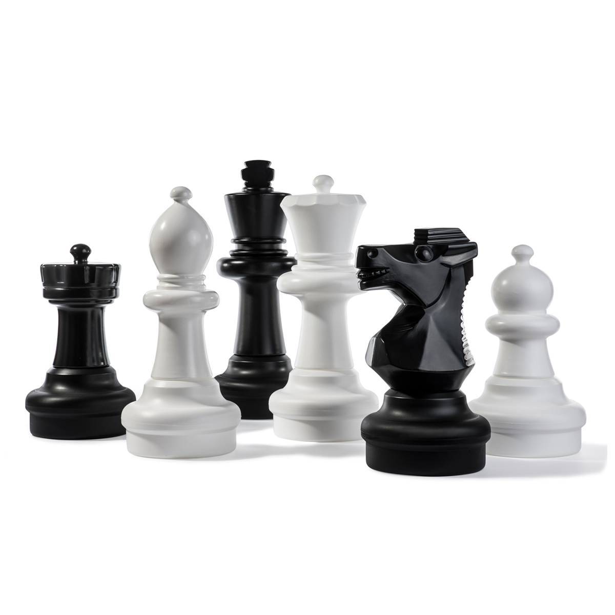 rollySchachspiel, gross - für den Aussenbereich, grösste Figur mit 64cm Höhe und einem Durchmesser von ca. 24cm, Figurensockel sind abschraubbar und können mit Sand oder ähnlichem Ballast zur Erhöhung der Standfestigkeit befüllt werden.