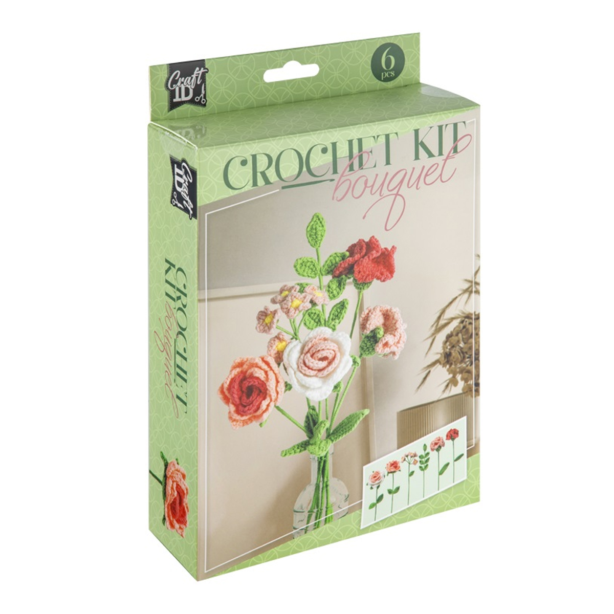 Häkelset Blumenstrauss pink 100% Polyester Garn.