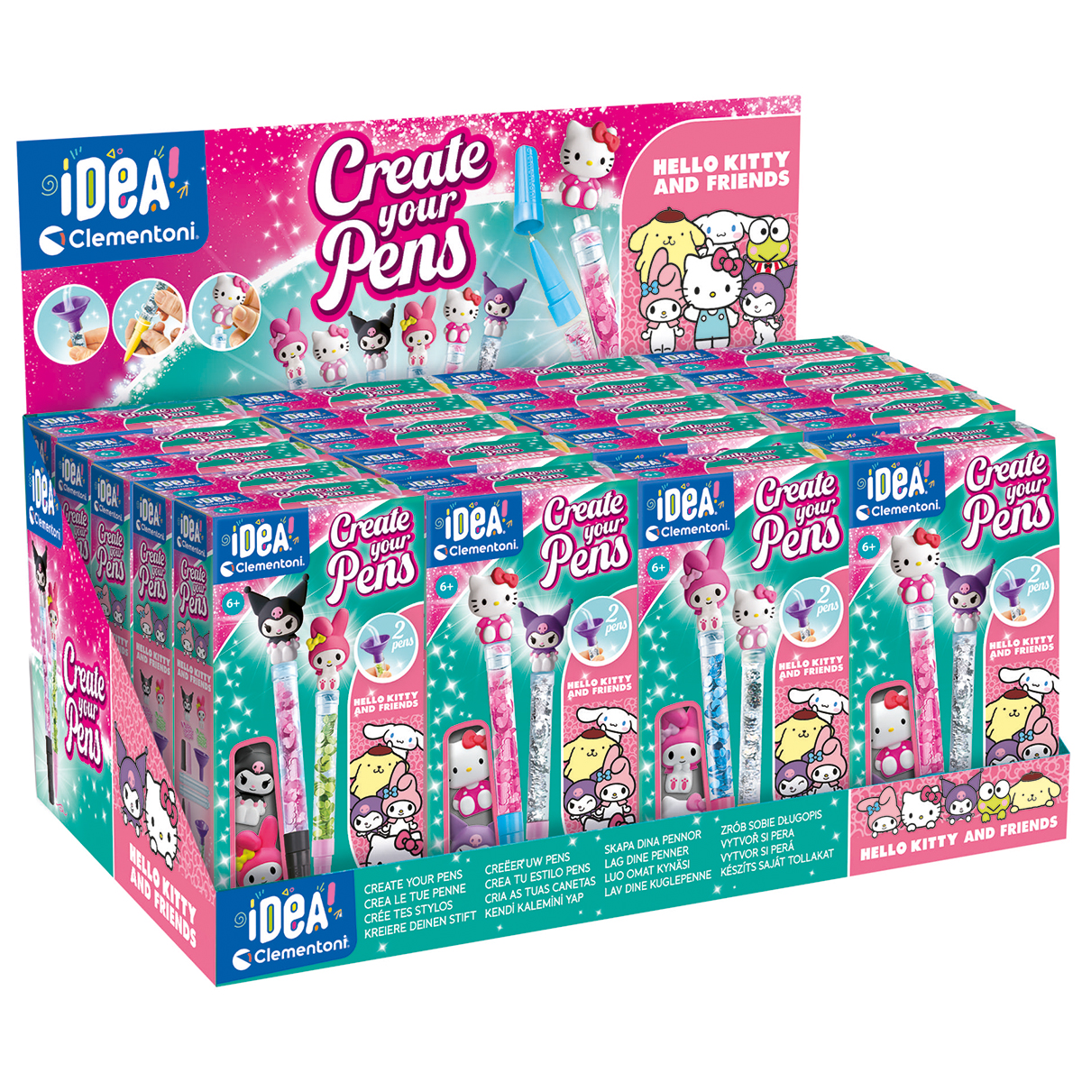 Deine Stift-Kreationen im Display 24 Stück. Ein originelles Kreativset, mit dem man 2 Stifte zusammenstellen und mit verschiedenen Dekorationen personalisieren kann. Ein praktisches und reichhaltig sortiertes Set, das pro Set Folgendes enthält: 2 Stifte, 2 Tinten, 2 Figuren und alle Werkzeuge, um sie herzustellen. Ein neues IDEA-Set, mit dem die Kinder ihre Stifte mit zahlreichen Accessoires und Dekorationen gestalten und personalisieren können.