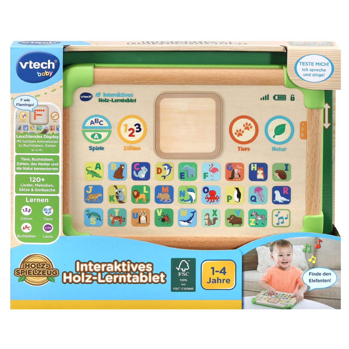 Mit dem Interaktiven Holz-Lerntablet aus nachhaltigen Materialien lernt das Kind spielerisch viel Neues kennen! Mit dem lustigen Holztablet Tiere, Buchstaben, Zahlen und die Natur entdecken. 4 Modustasten zu Buchstaben, Zahlen, Tieren sowie dem Wetter und um Suchspiele (nach bestimmten Buchstaben und Tieren) zu spielen. 26 Buchstabentasten, um Buchstaben, Laute, Tiere und ihre Lebensräume kennenzulernen. Leuchtender LED-Bildschirm, auf dem Buchstabe und lustige Animationen zu sehen sind.