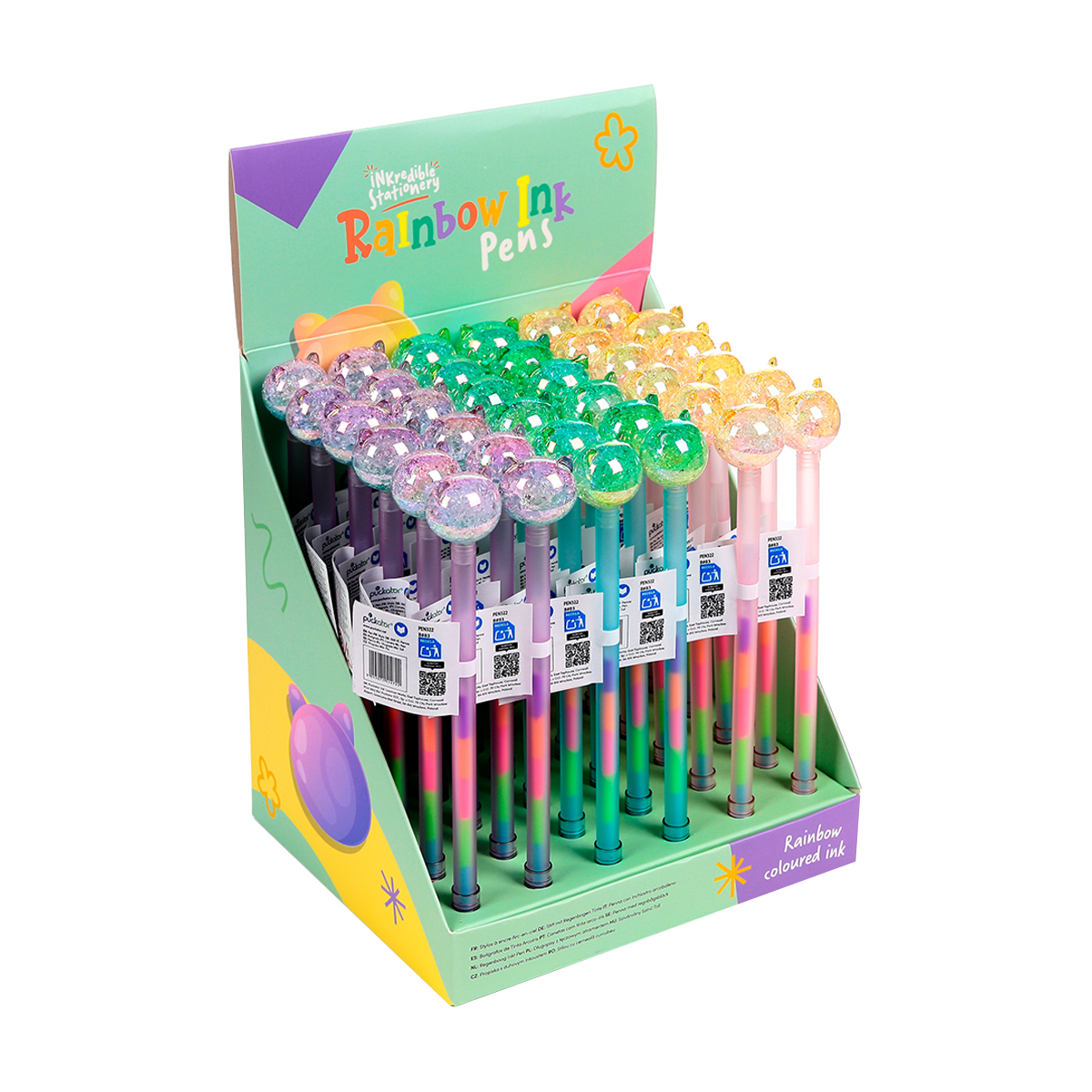 Katze Kugelschreiber mit Regenbogentinte assortiert im Display à 36 Stück.