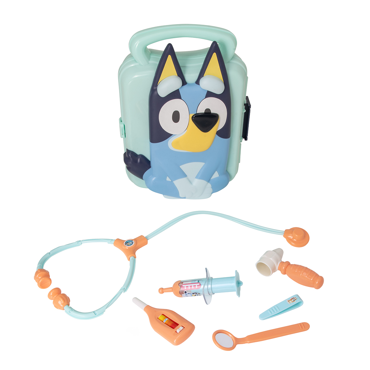 Diese lustig geformte Tragetasche enthält alles, was Sie brauchen, um wie ein echter Sanitäter zu spielen. Der Inhalt umfasst ein Spielzeug-Stethoskop, ein Thermometer, ein Otoskop, eine Spritze, Pflaster, eine Schere, einen Spiegel, eine Pinzette und eine Medikamentenflasche. Dieses Spielzeug fördert fantasievolles Rollenspiel und soziale Interaktion.
