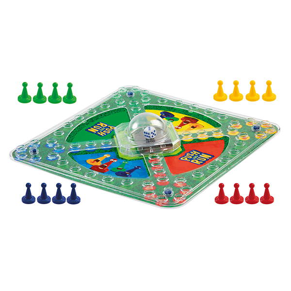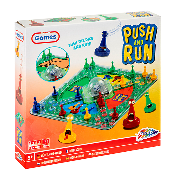 Gesellschaftsspiel Push & Run. Würfle und renne für 2-4 Spieler. Spielzeit ca. 30 min. Alter 5+.