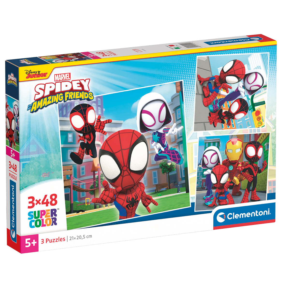Drei wunderschöne Puzzle mit Motiven aus der Welt von Spidey & Friends bestehend aus je 48 Teilen.