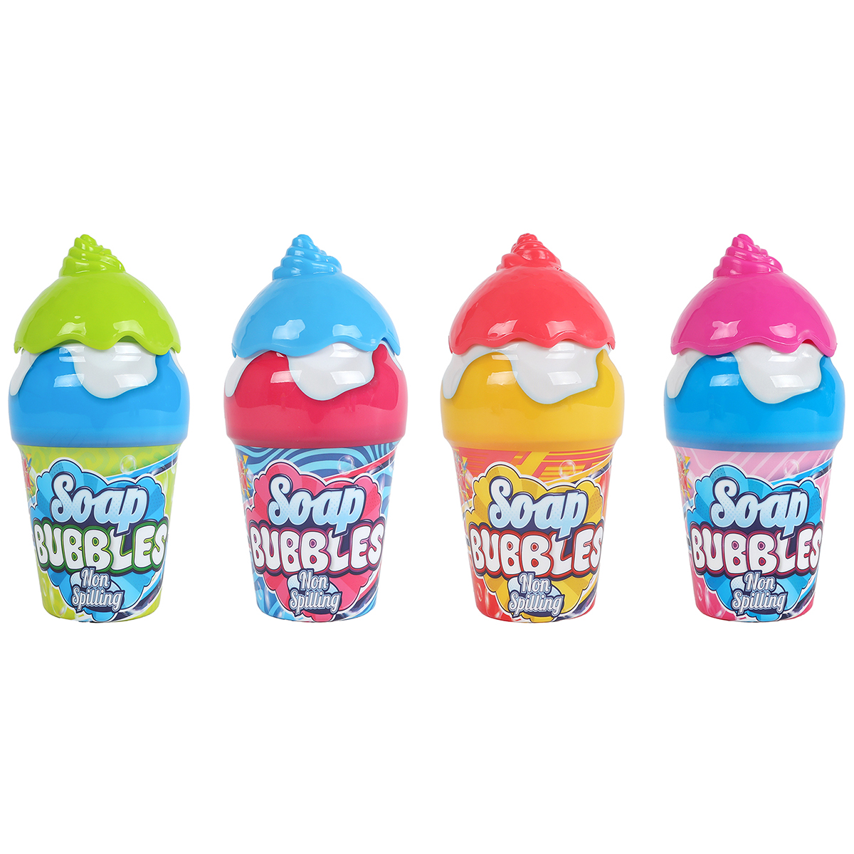 Seifenblasen-Eiscreme, 40 ml, auslaufsicher, 12cm, 4-fach assortiert im Display.