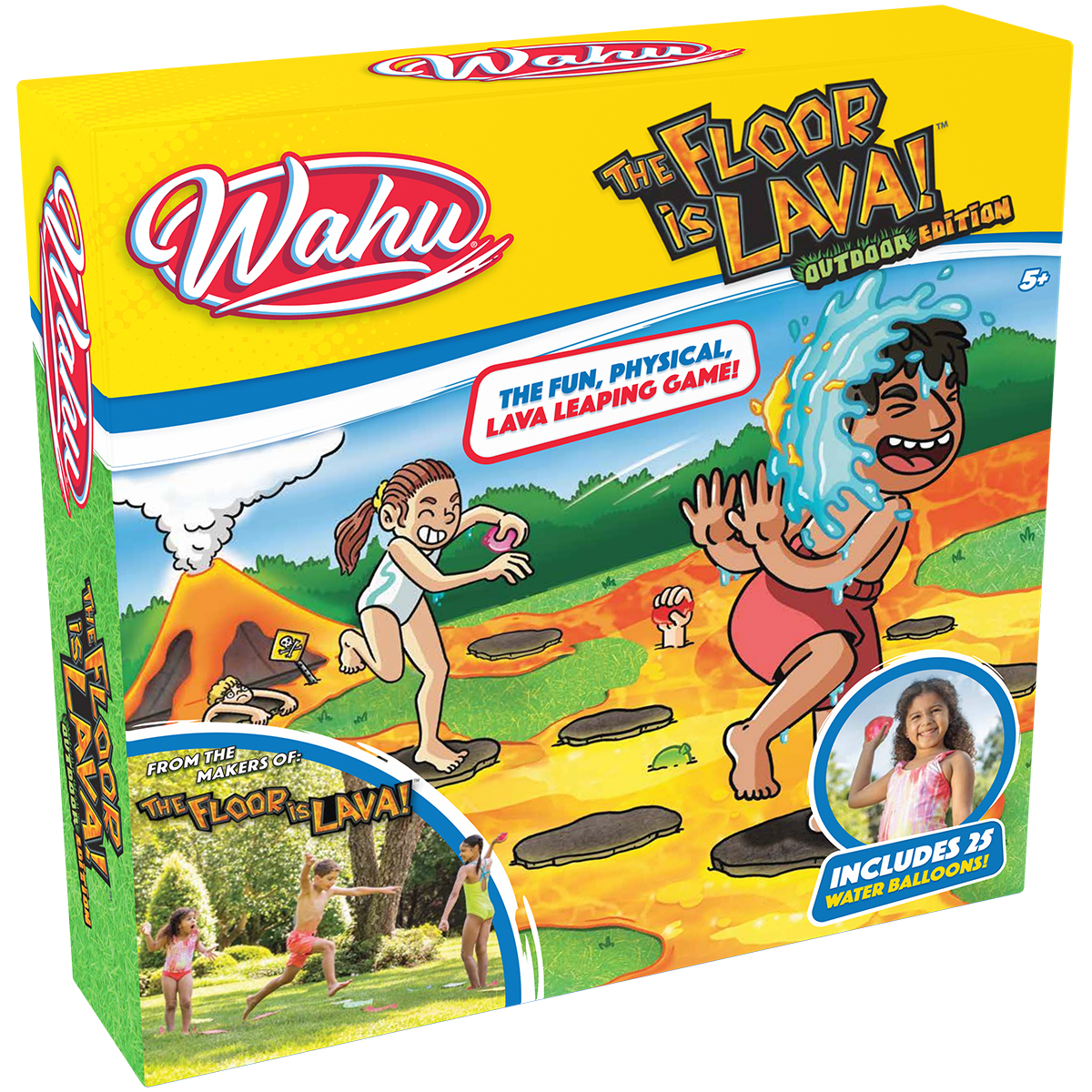 The Floor is Lava für draußen! Erlebe ein völlig neues Spielerlebnis, indem du mit deinen Freunden der geschmolzenen Lava auf dem Rasen ausweichst! Ein neuer Spinner, neue Ziegel und neue Spielmöglichkeiten! 25 Ziegel in 5 verschiedenen Farben und Größen. 25 Wasserballons, um deine Feinde zu bespritzen