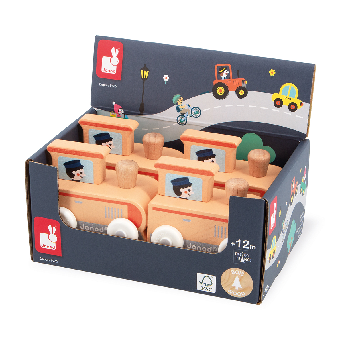 Tschu, Tschu! Auf geht's auf eine große Reise mit der Eisenbahn! Kleinkinder können mit dieser Holzlokomotive auf große Fahrt gehen. Dank ihrer Form ist die Lokomotive für Kleinkinder leicht zu handhaben. Spielzeug ausHolz für Kinder ab 12 Monaten. Zusammen mit deiner Matte und dem hübschen Würfel-Köfferchen aus dem Janod-Sortiment ergänzt dieses rollende Gefährt deine Welt perfekt.