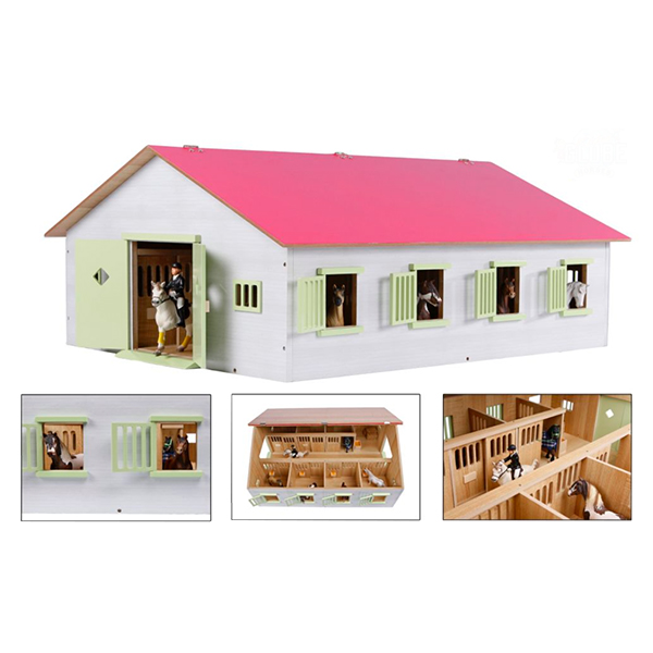 1:24 Ecurie chevaux rose en bois avec 7 boxes, 72.5x60x30cm, accessoires pas incluses.