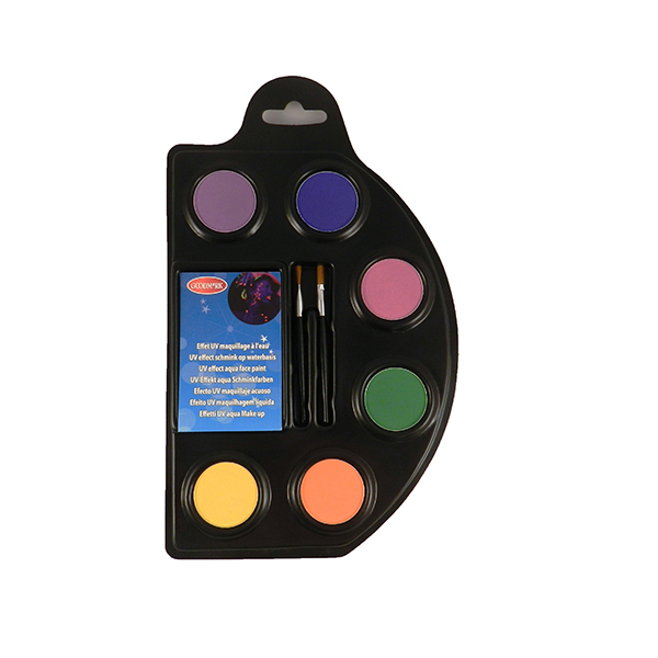 6 Aqua maquillage avec Effet UV - contiens 6x2g couleurs néon: bleu, jaune, orange, pink, vert, violet et 2 brosses.