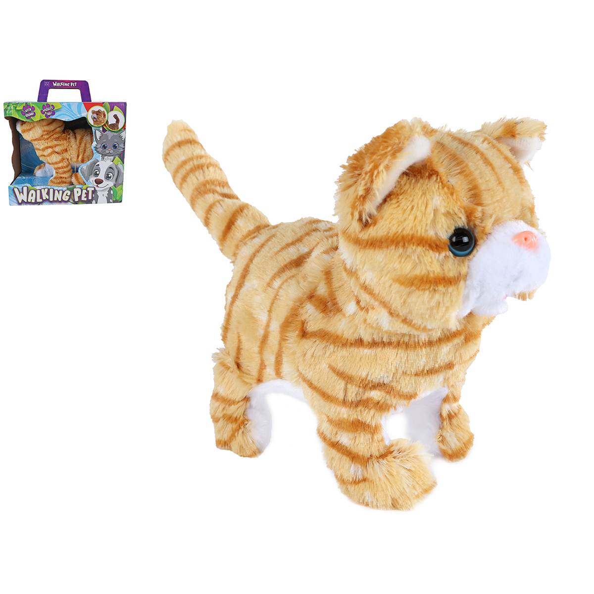 B/O Chat brun 21cm, avec diverses fonctions, les piles ne sont pas inclus.