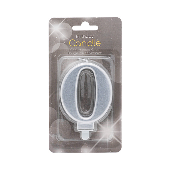 Bougie chiffre 0 argent. Décoration chouette pour le gâteau d'anniversaire.