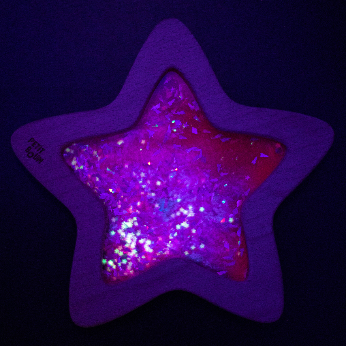 Un ciel pour rêver. Nous allons plus loin avec nos bouteilles Float classiques et présentons ces étoiles sensorielles et cette lune sensorielle dans les couleurs vives rose, bleu et jaune. Elles stimulent le suivi visuel des plus petits tout en favorisant le calme et la concentration.