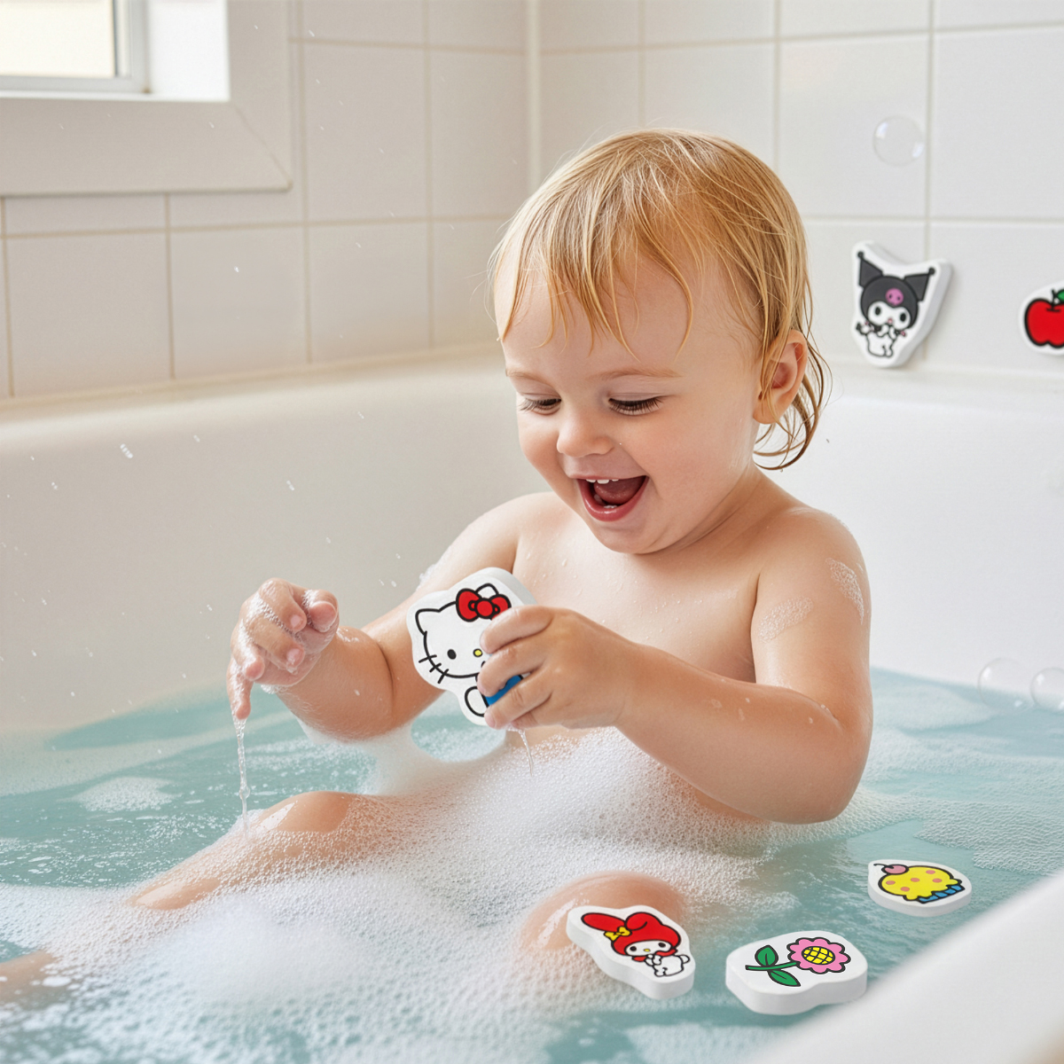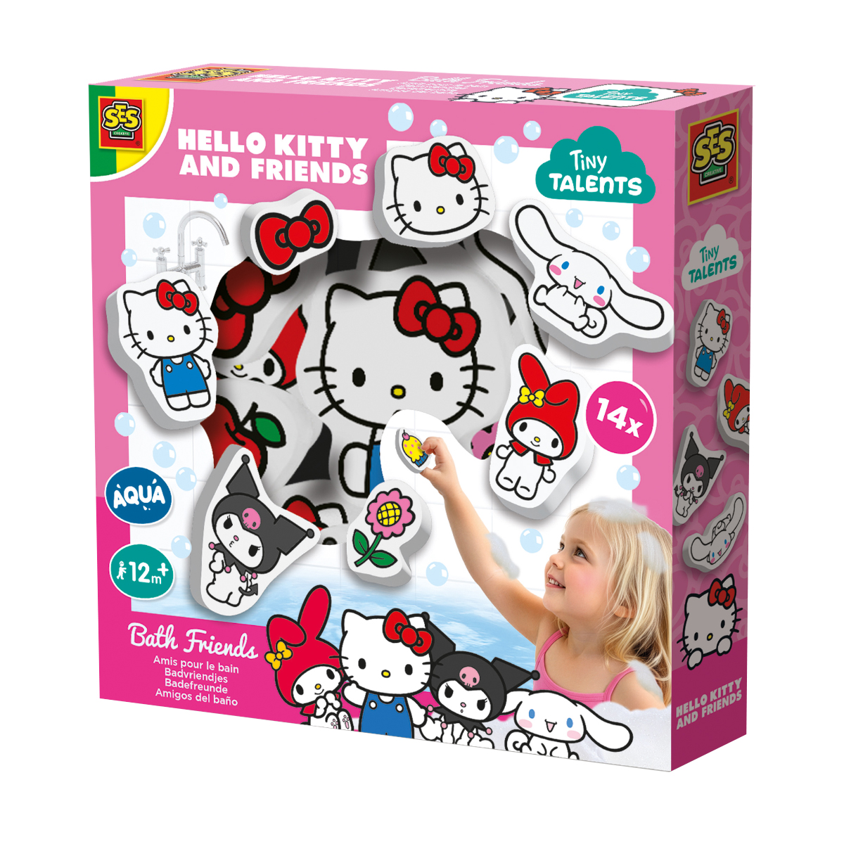 Le moment du bain devient particulièrement amusant avec Hello Kitty et ses amis. Ces joyeux personnages de bain en mousse flottent sur l'eau et adhèrent aux carreaux humides ou au bord de la baignoire. Cela signifie des histoires sans fin pendant le bain. Fabriqués à partir de matériaux sûrs, doux et durables, ils sont parfaits pour les enfants à partir de 12 mois. Contenu: 14 personnages de bain en mousse Hello Kitty et ses amis