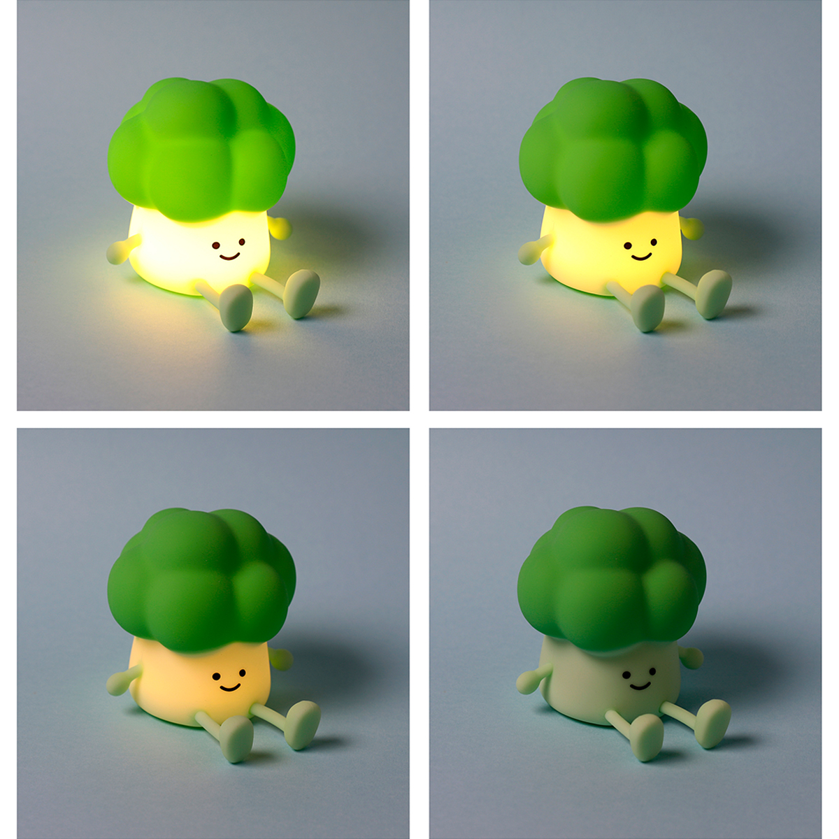 Lampe de nuit LED brocoli adorable avec support de téléphone. Rechargeable par câble USB-C.