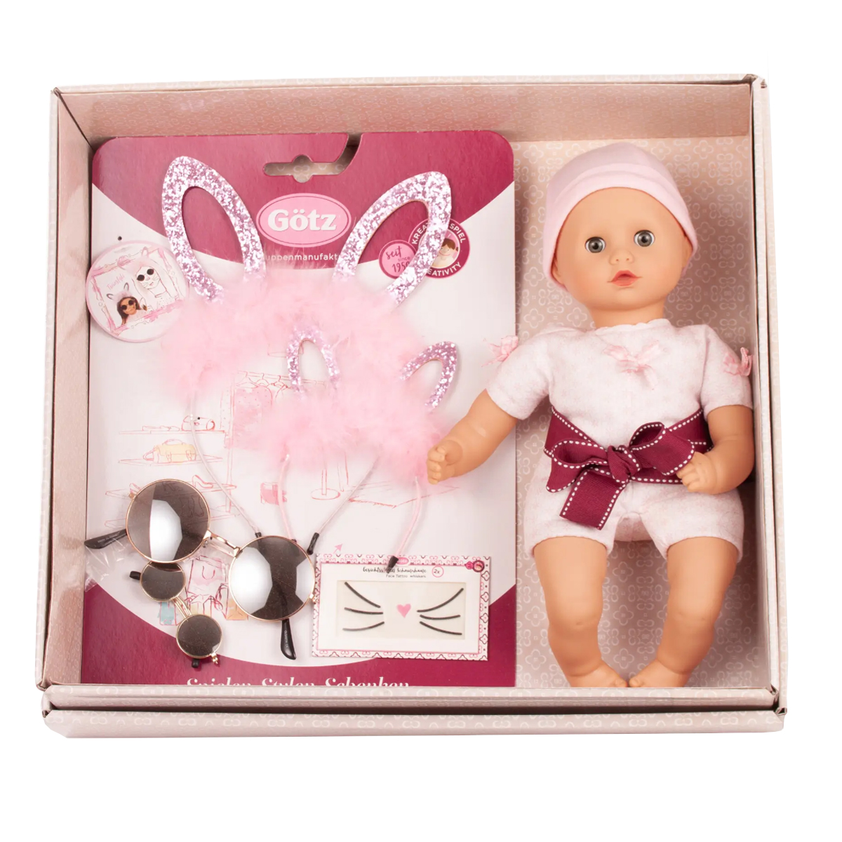 Ce coffret de Pâques de haute qualité, Muffin Joyeuses Pâques, allie élégance et savoir-faire artisanal dans un coffret raffiné. Il comprend un ensemble coordonné de poupées Muffin à habiller, chacune avec son chapeau assorti, un serre-tête lapin de Pâques pailleté et des lunettes à monture métallique – une pour l'enfant et une pour la poupée. Agrémenté de tatouages faciaux conçus avec amour, cet ensemble est idéal pour des moments de jeu partagés. Une idée cadeau attentionnée pour tous ceux qui apprécient la qualité, l'esthétique et les petites attentions. Les poupées Muffin ont un corps en tissu doux, rembourré de coton et de granulés. Leurs bras et leurs jambes sont en vinyle. Lavables en machine et compatibles avec le sèche-linge, elles sont faciles d'entretien et parfaites pour jouer au quotidien. Contenu: poupée Muffin, chapeau, serre-tête pour enfant et poupée, lunettes à monture métallique pour enfant et poupée, tatouages faciaux.