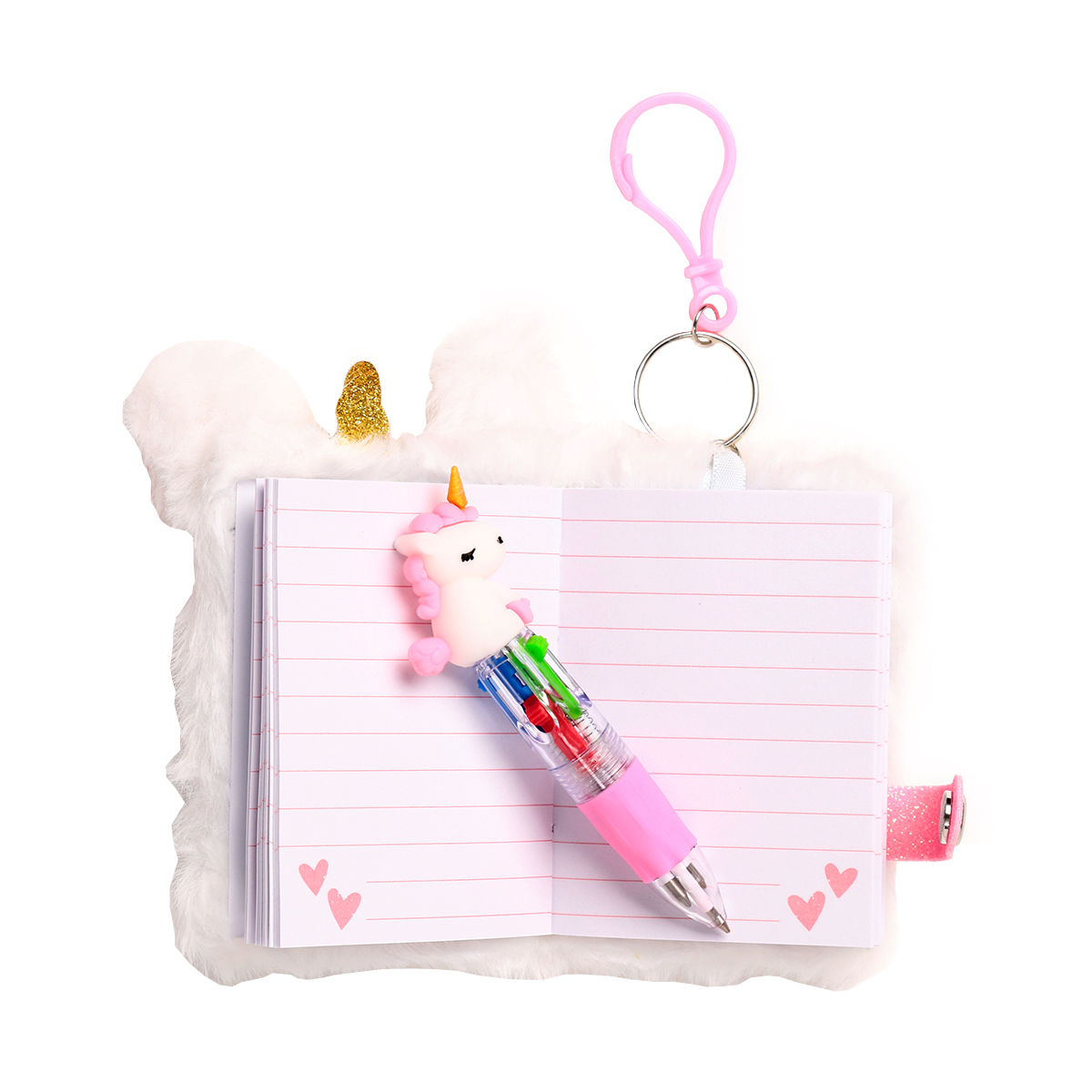 Set d'écriture licorne consistant en carnet peluche avec stylos 4 couleur